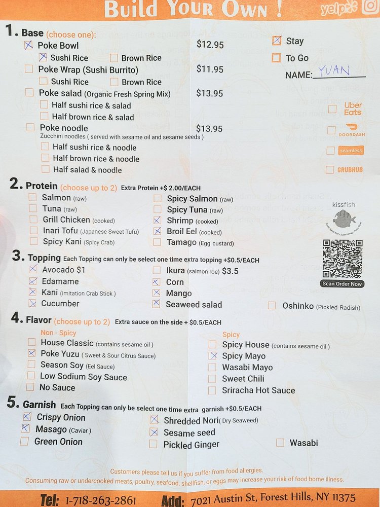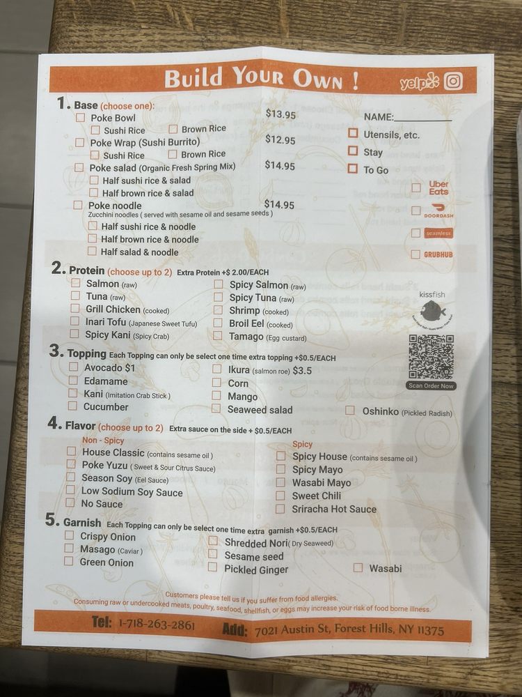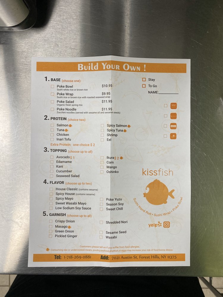 Kissfish is a popular Poke - Sushi Bar in Forest Hills, NY, known for its customizable options and fresh ingredients. Customers rave about the Build Your Own Poke bowls and Sushi Hand Rolls, with options like Salmon, Tuna, Eel, and more. The menu also offers Combo Deals for those looking to try multiple items. The casual and quiet ambiance, along with options for outdoor seating, make it a great spot for a relaxed meal. The friendly service and fast preparation are highlighted in customer reviews, along with the generous portions and beautiful presentation. Whether you're in the mood for a healthy poke bowl or flavorful sushi hand rolls, Kissfish is a must-visit for a satisfying dining experience.